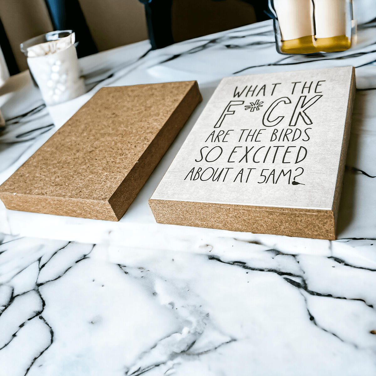 A wooden block sign measuring 6x4x1"
