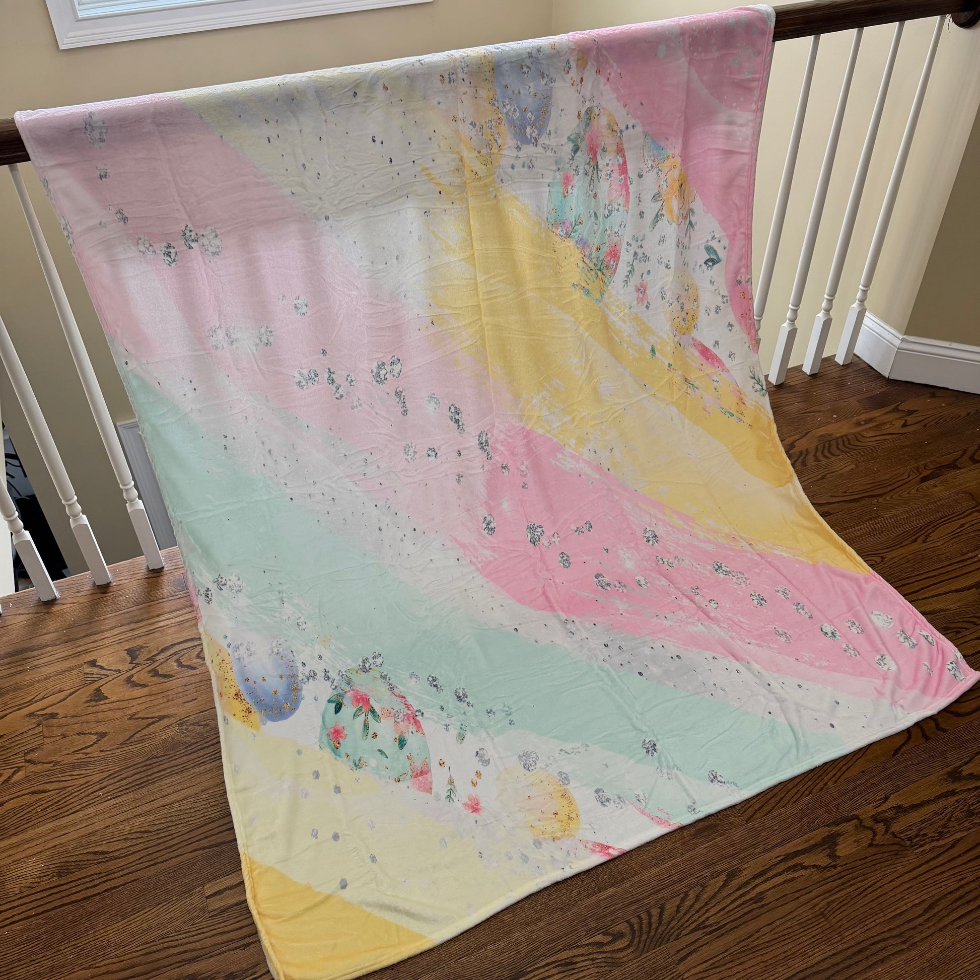 - Material: super soft plush minky, printed top, white underside