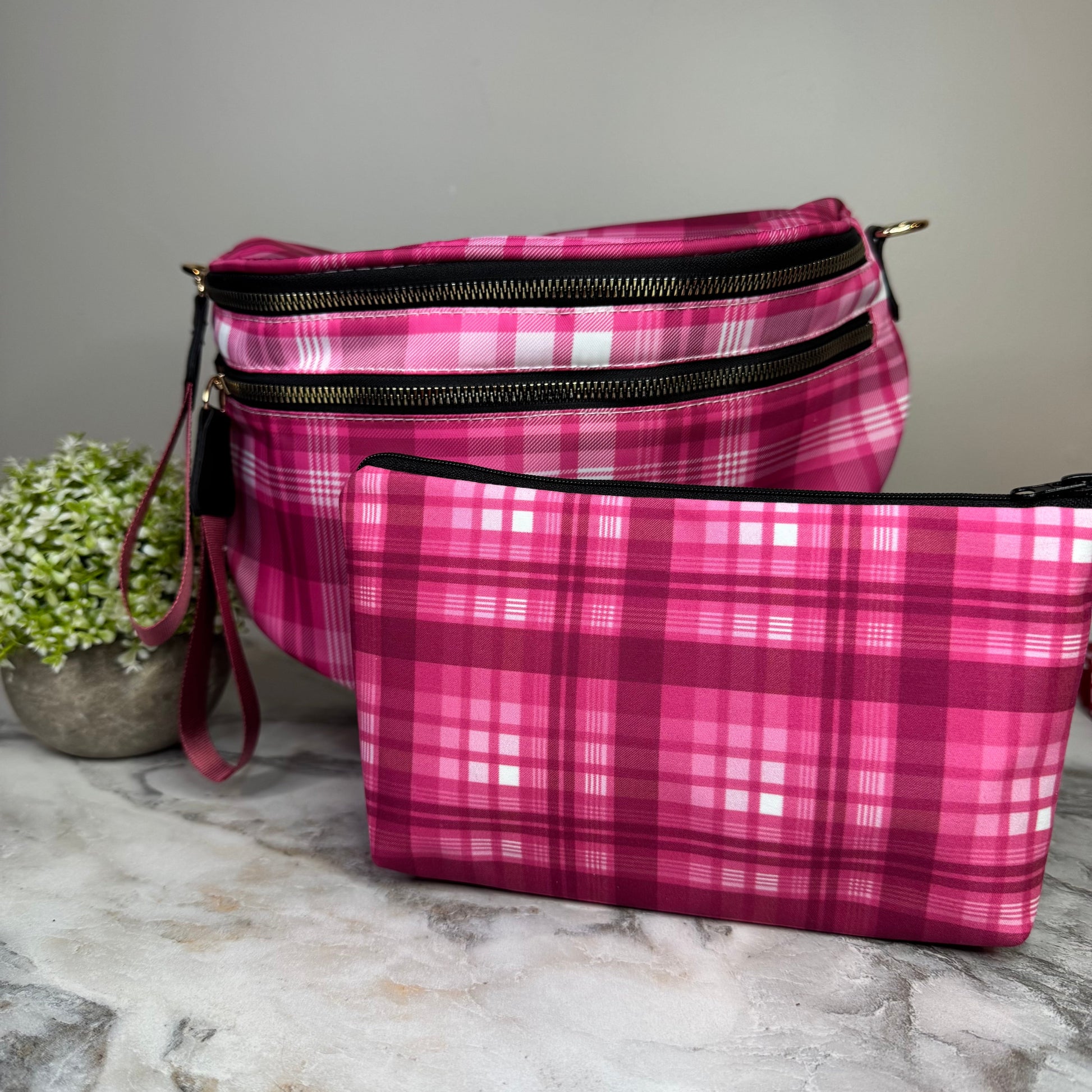 Bundled Set - Roni & Pouch - Pink Plaid